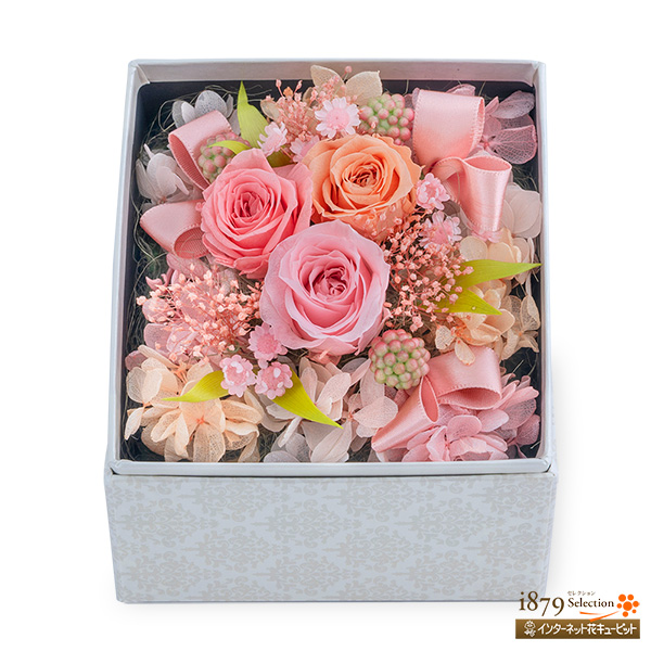かわいらしい色合いのバラが主役のボックスフラワーです。箱を開けた瞬間、広がる花々の美しさをお楽しみいただけます。プリザーブドフラワーは、生花に保存加工を施した長く楽しめるギフトです。通常の生花よりも長い間飾っておくことができるので、お部屋のインテリアとしても人気があります。水やりなどのこまめなお世話もいらず、フラワーギフトをなるべく長く形に残しておきたい方におすすめです。【※この商品は、離島などの一部の地域へのお届けは出来ません】