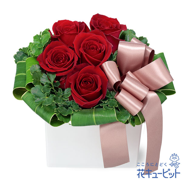 【誕生日バラ(法人)】赤バラのキューブアレンジメント