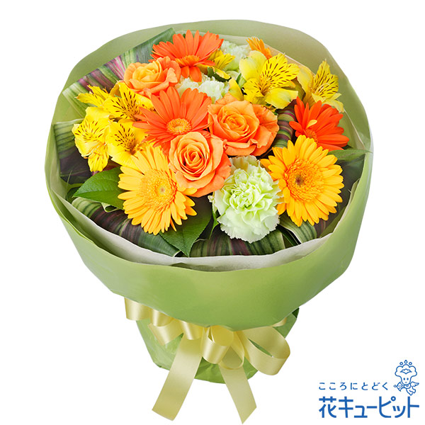ビタミンカラーの明るいお花をまとめた花束です。人気のガーベラやバラを可愛らしく上品にまとめました。年代問わず贈って頂けます。