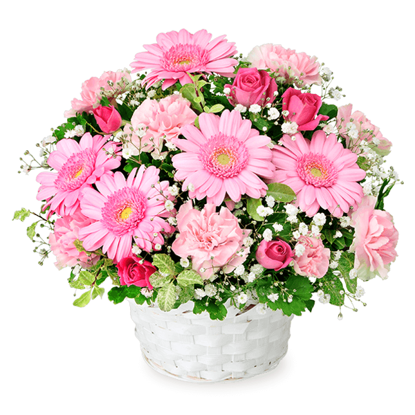 ピンク色のキュートなお花をたっぷり使いました。ふんわりとしたアレンジメントのフォルムは可愛らしい印象に。ピンクガーベラの花言葉は「感謝」。日頃の思いをお花で伝えてみませんか?