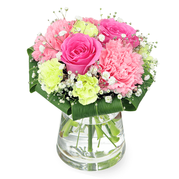 ピンクのバラと白いトルコキキョウを合わせた、甘く可愛らしい雰囲気のアレンジメント。開店祝い・開業祝い・就任祝いなどのプレゼント・ギフトにおすすめです。